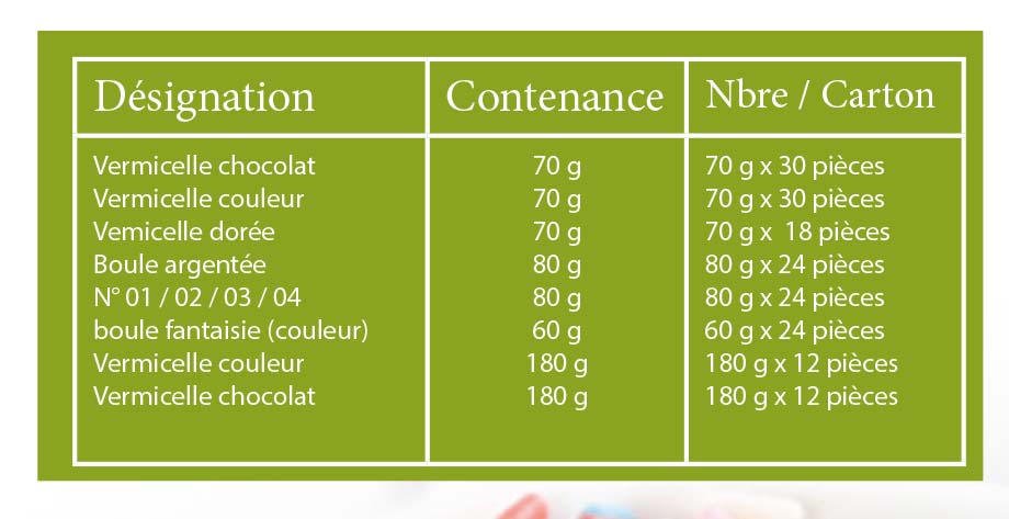 Apporteront une touche de gaieté, de la fantaisie à tous vos desserts en les décorant de mille couleurs.